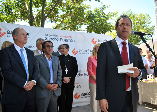 Por su parte, el intendente Guzmán, que suspendió su descanso vacacional para participar de la jornada, destacó el trabajo de la Provincia por la “inclusión” y señaló que Scioli “es el único gobernador que vino a Escobar en estos últimos 20 ó 30 años”. En realidad, si bien el mandatario provincial lleva un inigualable record de visitas al distrito (13 en lo que va de su mandato), la afirmación resultó un tanto imprecisa, ya que tanto Eduardo Duhalde como Carlos Ruckauf y Felipe Solá -sus tres últimos predecesores- también habían visitado oficialmente el distrito cuando eran gobernadores.