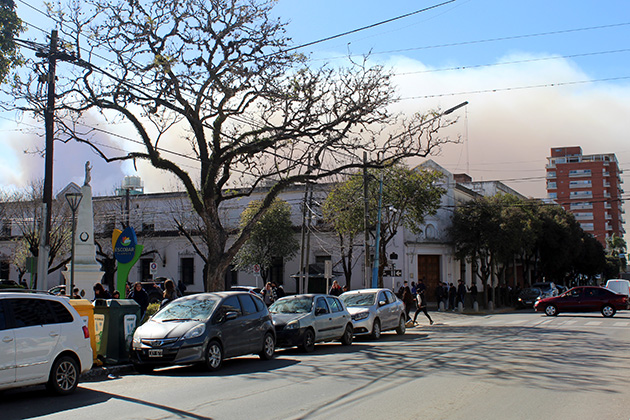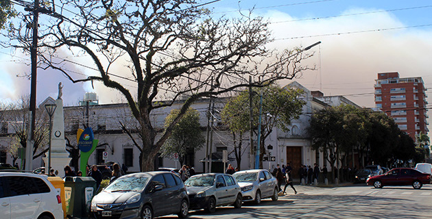 La densa humareda proviene del parque nacional Ciervo de los Pantanos, en Otamendi, donde el fuego está fuera de control. Defensa Civil, Prefectura y bomberos del distrito colaboran en la extinción del amplio foco ígneo.