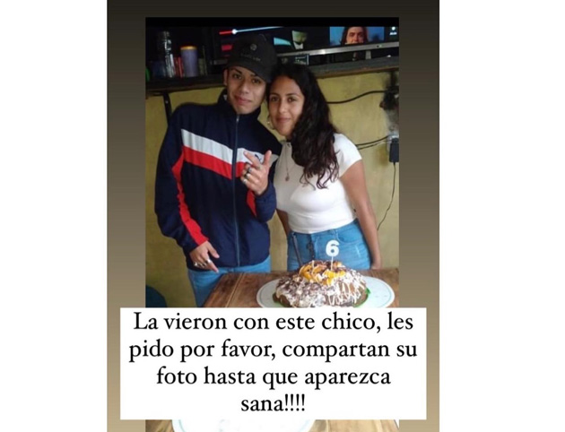 “Estamos todos desesperados, les pido por favor que compartan hasta que aparezca sana”, solicitó la mujer, que también publicó una foto de la pareja de Kiara.