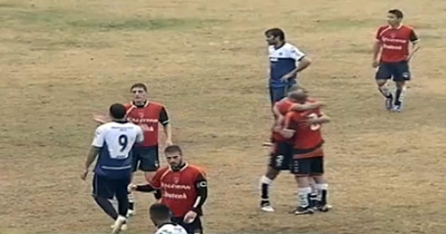 Desahogo. Finalizó el partido y los jugadores de Armenio festejan el triunfo ante el Quemero.
