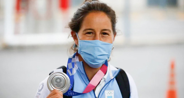 Plata en mano. La jugadora de Las Leonas muestra la medalla lograda en los Juegos Olímpicos Tokio 2020.