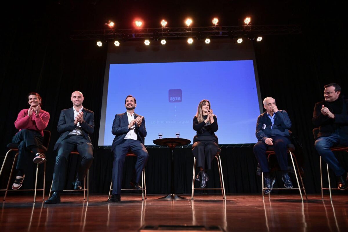 Sobre el escenario, junto a Sujarchuk y Galmarini, estuvieron el secretario general del Municipio, Carlos Ramil; la secretaria de Infraestructura, Verónica Sabena; el vicepresidente de AySA, Martín Reibel; y el secretario general del Sindicato Gran Buenos Aires de Trabajadores de Obras Sanitarias, José Luis Lingeri.