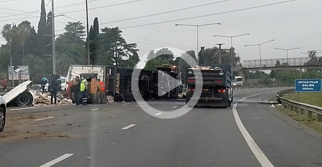 Un camión con acoplado protagonizó este miércoles a la madrugada un espectacular accidente sobre la autopista Panamericana al volcar y prenderse fuego cuando circulaba a la altura del kilómetro 44,500, mano a Capital Federal, en la localidad de Ingeniero Maschwitz.