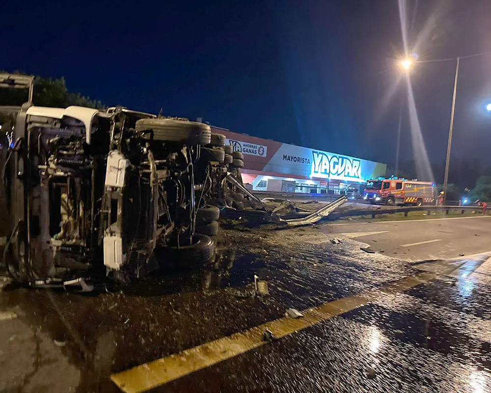 El vuelco del camión bloqueó completamente el tránsito en ambos sentidos. Personal policial se hizo presente en el lugar para asistir al conductor, que quedó atrapado en el habitáculo de la unidad, y controlar la circulación, mientras se aguardaba la intervención de Policía Científica.