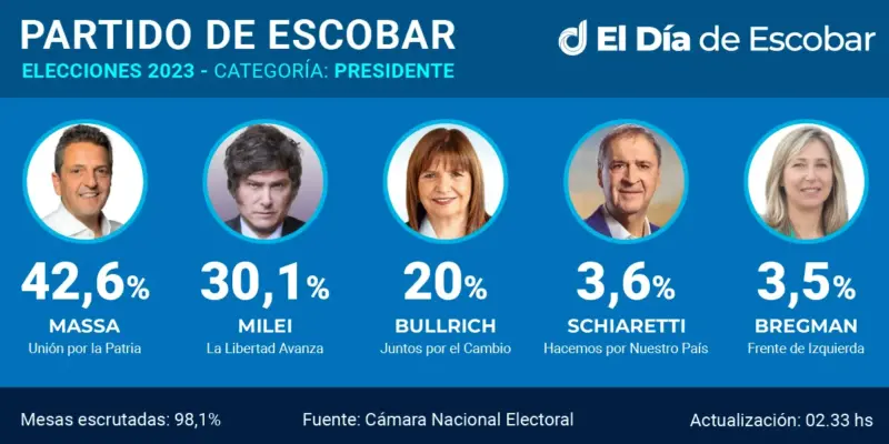 El amplio triunfo de Unión por la Patria en el partido de Escobar no tuvo fisuras, ocurrió en todas las categorías y prácticamente en todas las mesas. No obstante, la votación en cada localidad presentó particulares interesantes y dignas de consignar.
