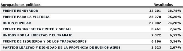 En la comparación de las primarias, el Frente para la Victoria fue la fuerza que más creció al pasar del 22% de agosto a un 25,2%. Esa mejora le permitió no solo subir del tercer al segundo puesto sino conseguir una banca más. Por su parte, Costa se elevó menos de lo esperado al escalar del 23% de las PASO al 24,2%.