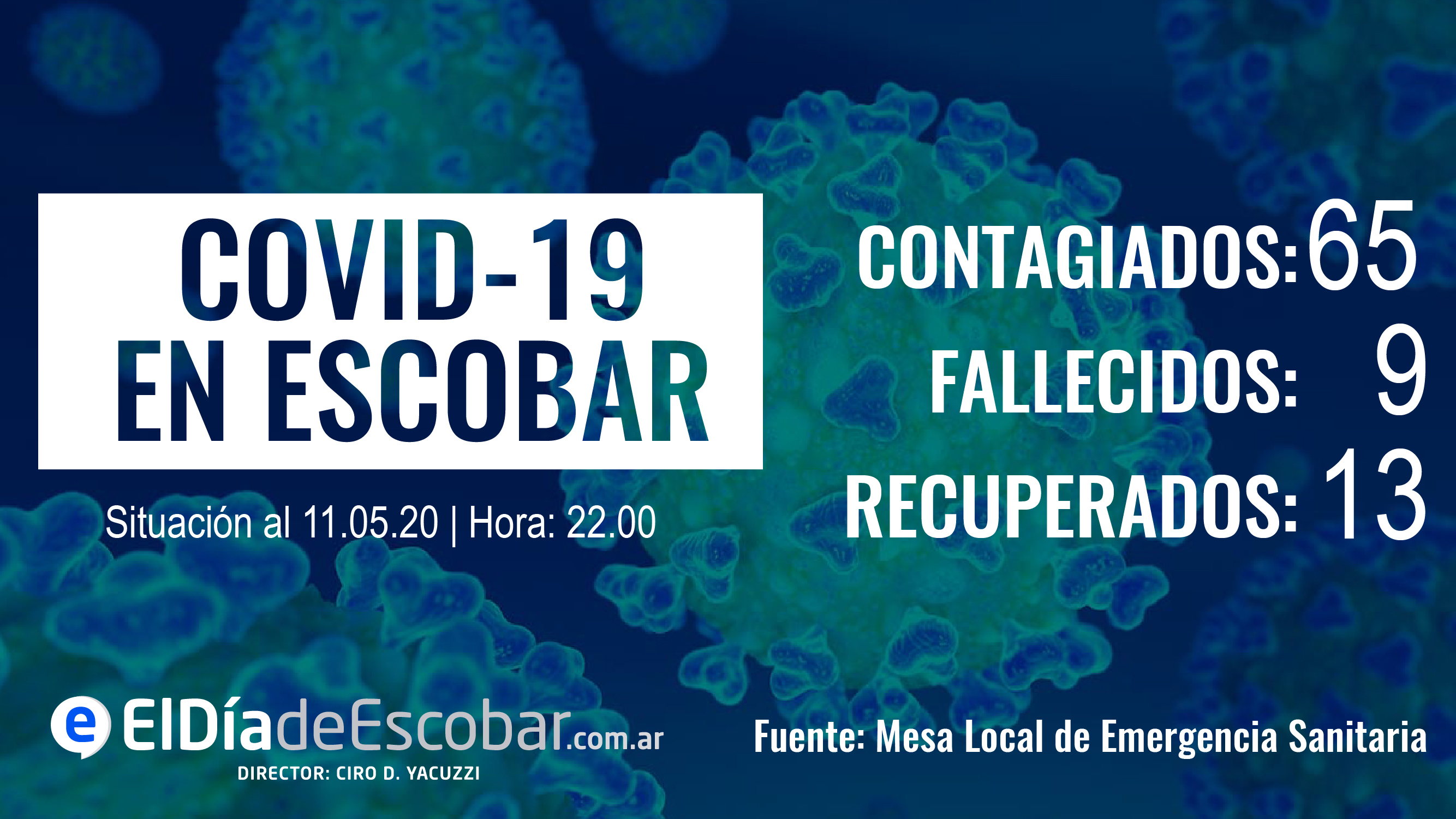 Con estos nuevos registros, el número de infectados en el partido de Escobar ya llega a 65 y se triplicó en apenas 21 días, ya que eran 22 al 20 de abril. También puede observarse que se duplicó en los últimos 17 días, ya que al 24 de abril se habían reportado 33 contagios (ver nota acá).