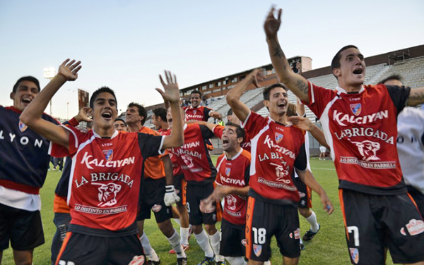 Molina ya convirtió el último penal de la serie y los jugadores de Armenio festejan con su gente la clasificación.