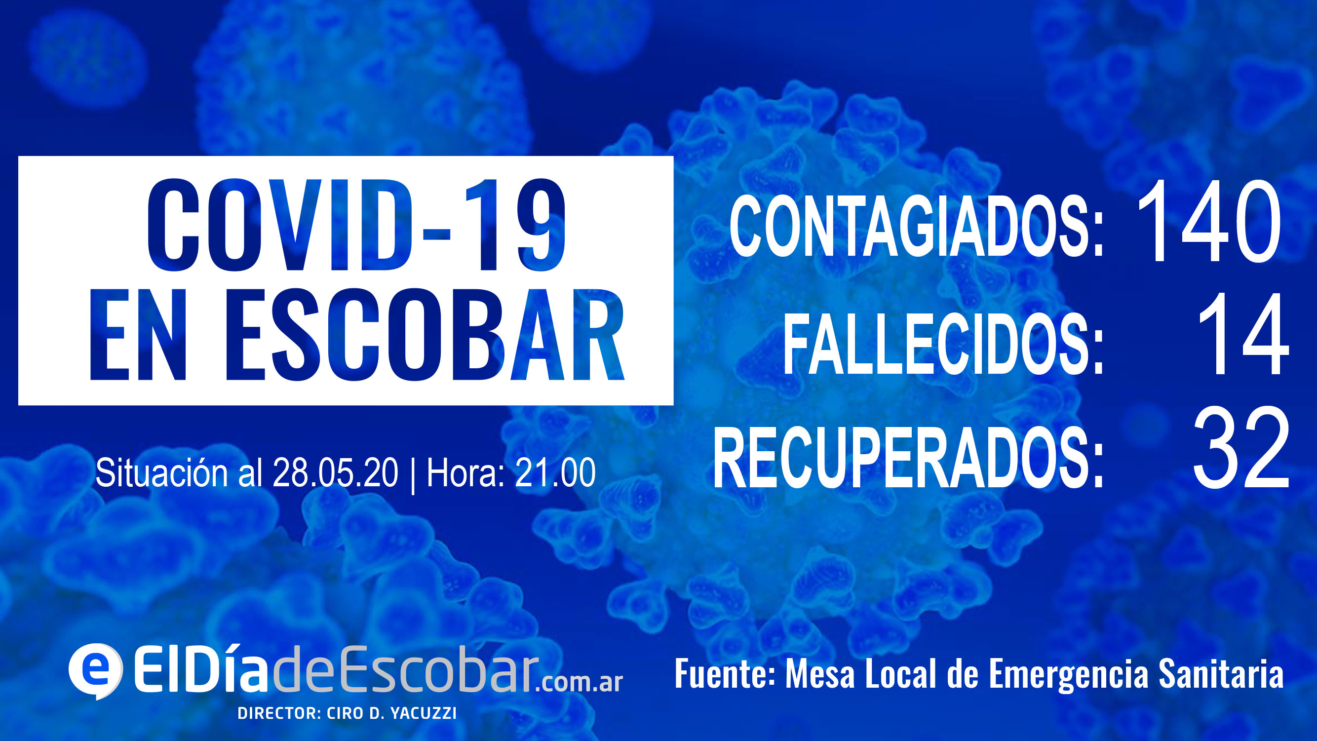 El número total de infectados en el partido de Escobar asciende a 140, de los cuales 14 fallecieron y 32 fueron dados de alta. Además, hay 97 personas en observación con síntomas compatibles.