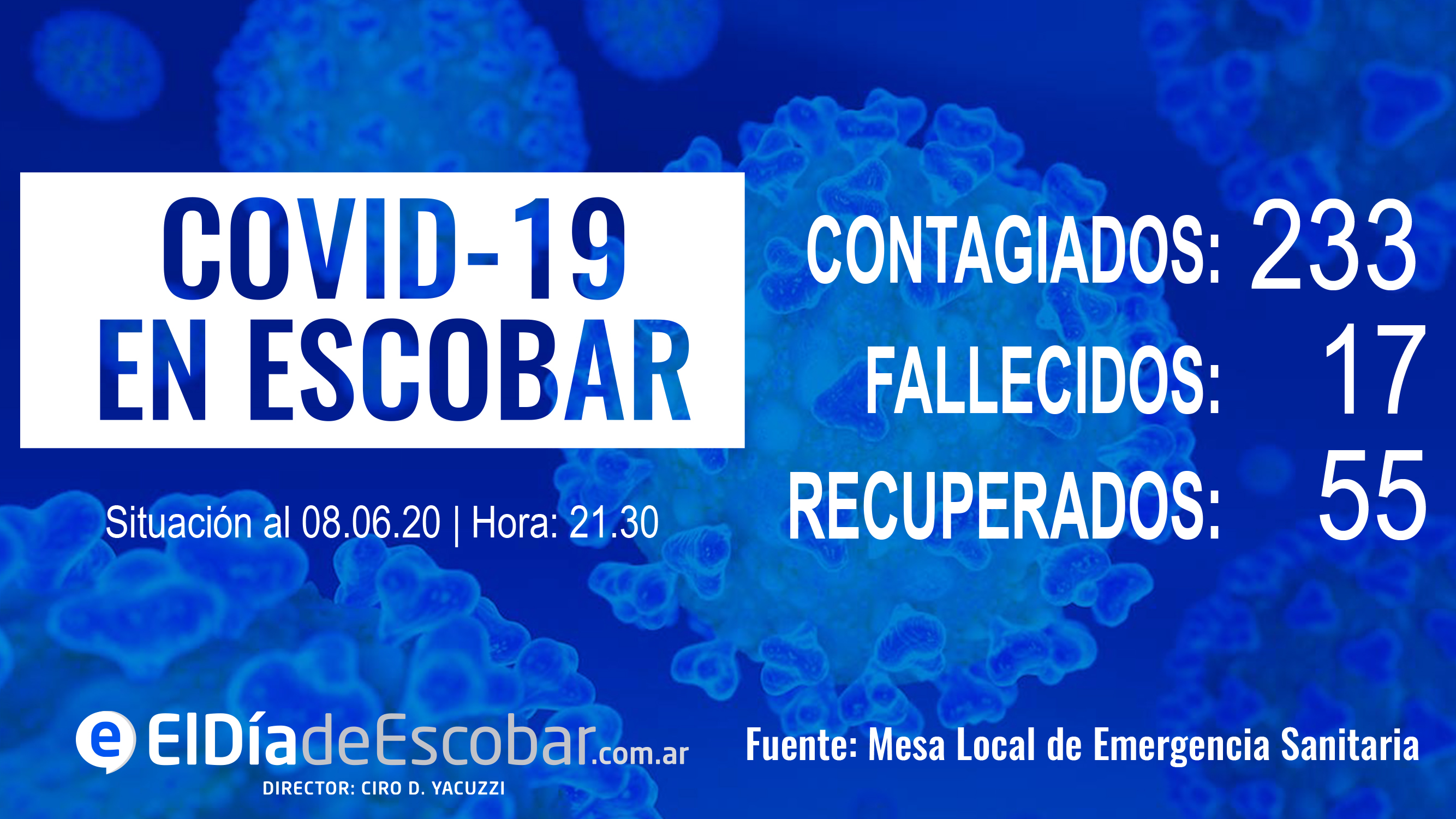 De esta manera, el número de contagios en Escobar es de 233, según las estadísticas del Servicio Integrado de Información Sanitaria Argentina (SIISA). Esto representa el 2,6% de los casos positivos de la provincia de Buenos Aires (9.044).