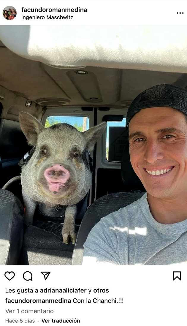 Ese mismo día, el hombre llevó a la minipig en su camioneta hacia el que sería su nuevo hogar. Cuando subió con el animal al vehículo, sacó una selfie y la publicó en sus redes sociales:“Con la chanchiii”, escribió.