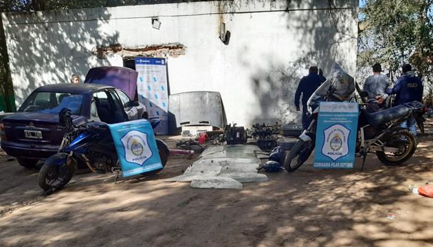 La investigación se inició a partir del robo de una moto. La Policía allanó un domicilio de la calle 1º de Mayo donde recuperó el vehículo robado y secuestró seis autos sin patente, además de numerosas piezas y elementos de corte.