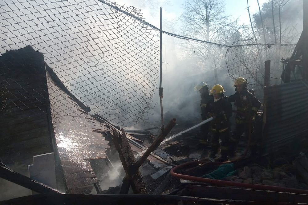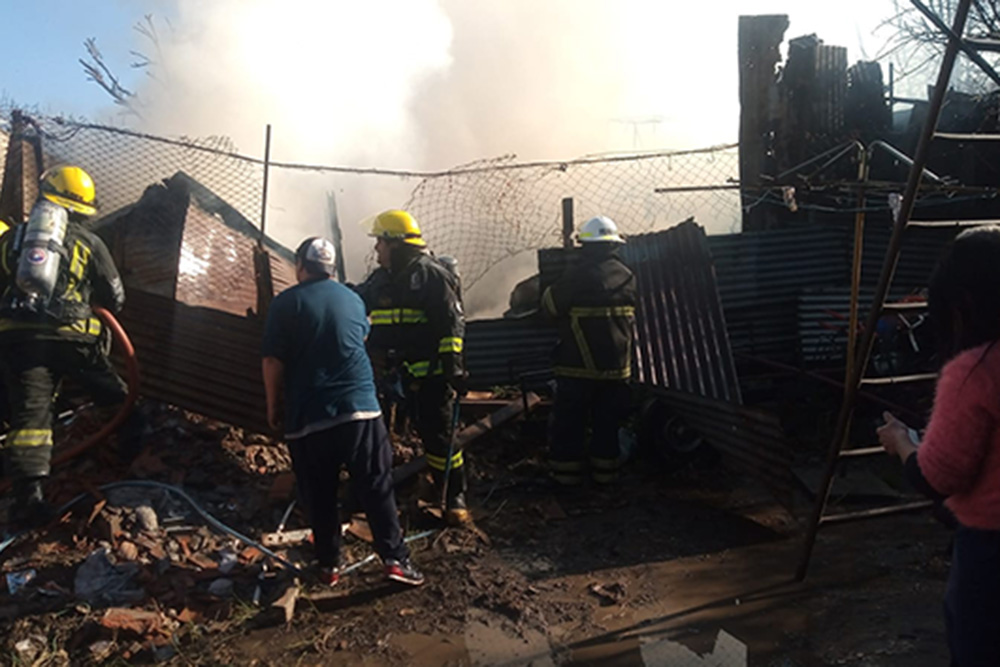 Las pérdidas materiales fueron totales en las dos viviendas de madera y chapas y parciales en la primera, construida en material, donde se originó el incidente.
