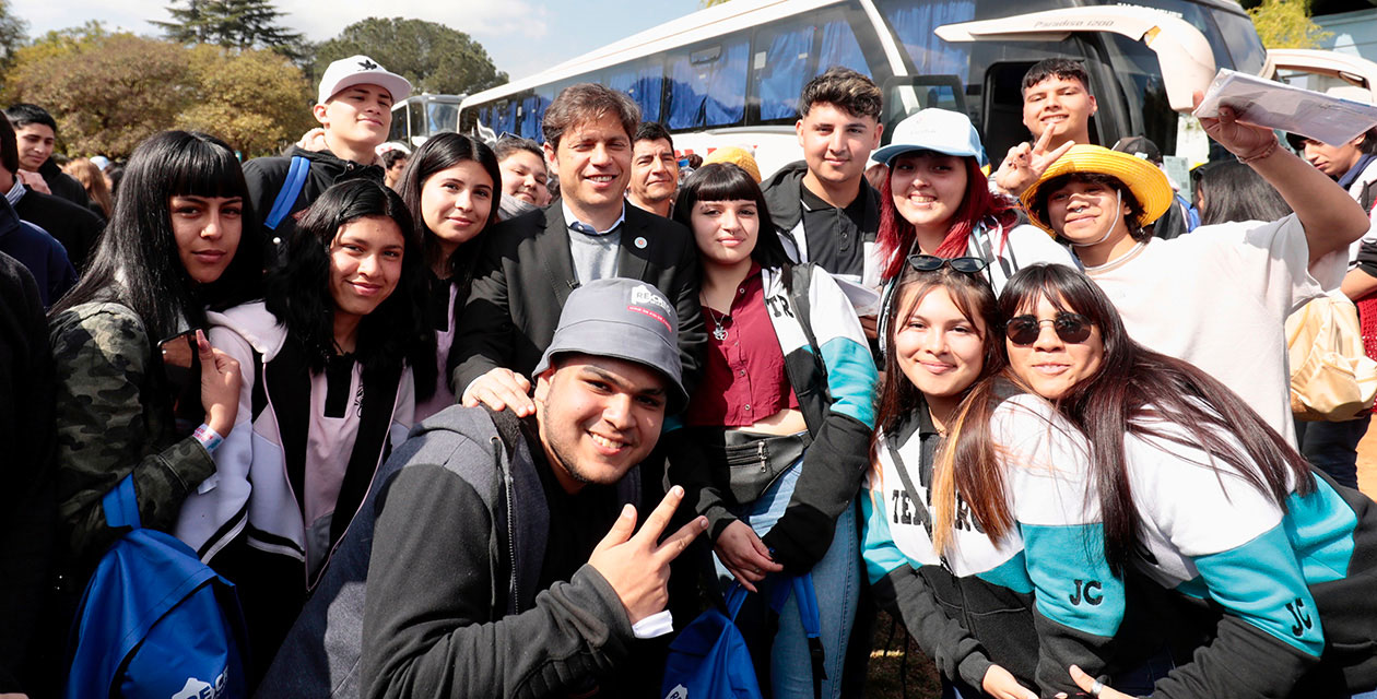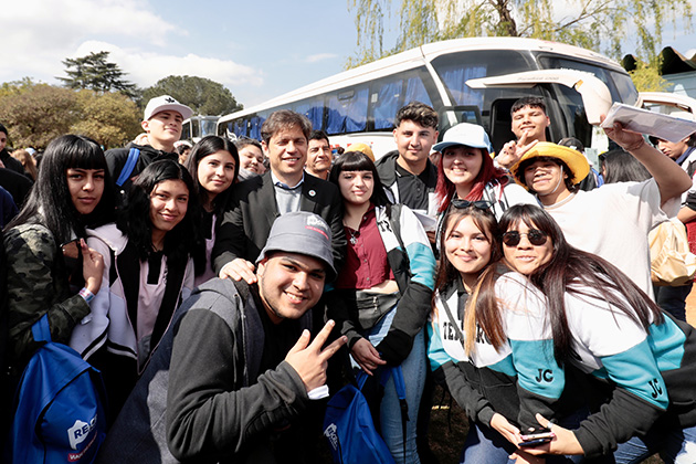 En el marco del Día del Estudiante, el gobernador Axel Kicillof acompañó esta mañana la despedida de más de 200 alumnos de diferentes escuelas secundarias del partido de Escobar que iniciaron su viaje de egresados a la costa atlántica a través de un programa provincial.