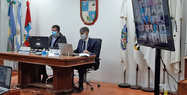 El debut tecnológico del Concejo se inició bastante puntual, apenas minutos después de las 14:30 -estaba pautado para las 14- y se extendió hasta las 17:40, con un prologando cuarto intermedio mediante por algunas fallas técnicas. En el recinto estuvieron el presidente, Luis Carranza, y los jefes de cada bloque. Los demás concejales se conectaron a la plataforma digital Zoom desde sus domicilios.