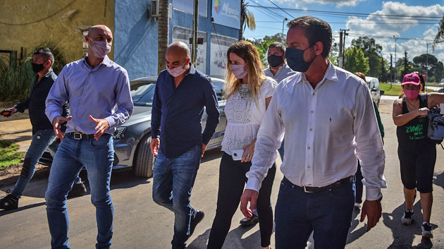 Comitiva. El intendente recorrió la nueva obra acompañado por algunos funcionarios y vecinos.