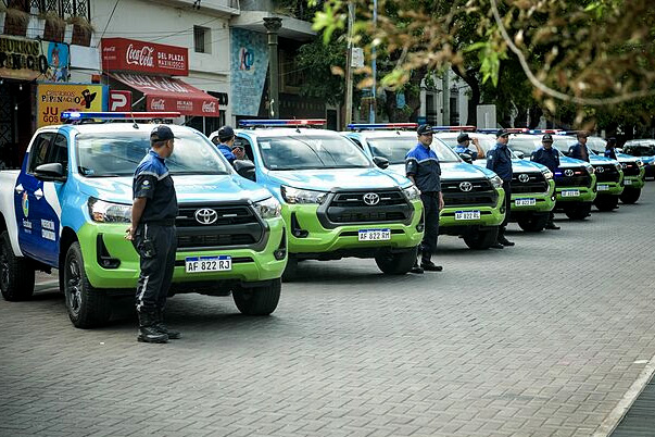 La nueva flota está compuesta por 12 camionetas Hilux adquiridas con fondos municipales y un automóvil Sandero cero kilómetro, que donado por el parque industrial CIPO de la localidad de Garín para vigilar ese corredor y los barrios adyacentes.