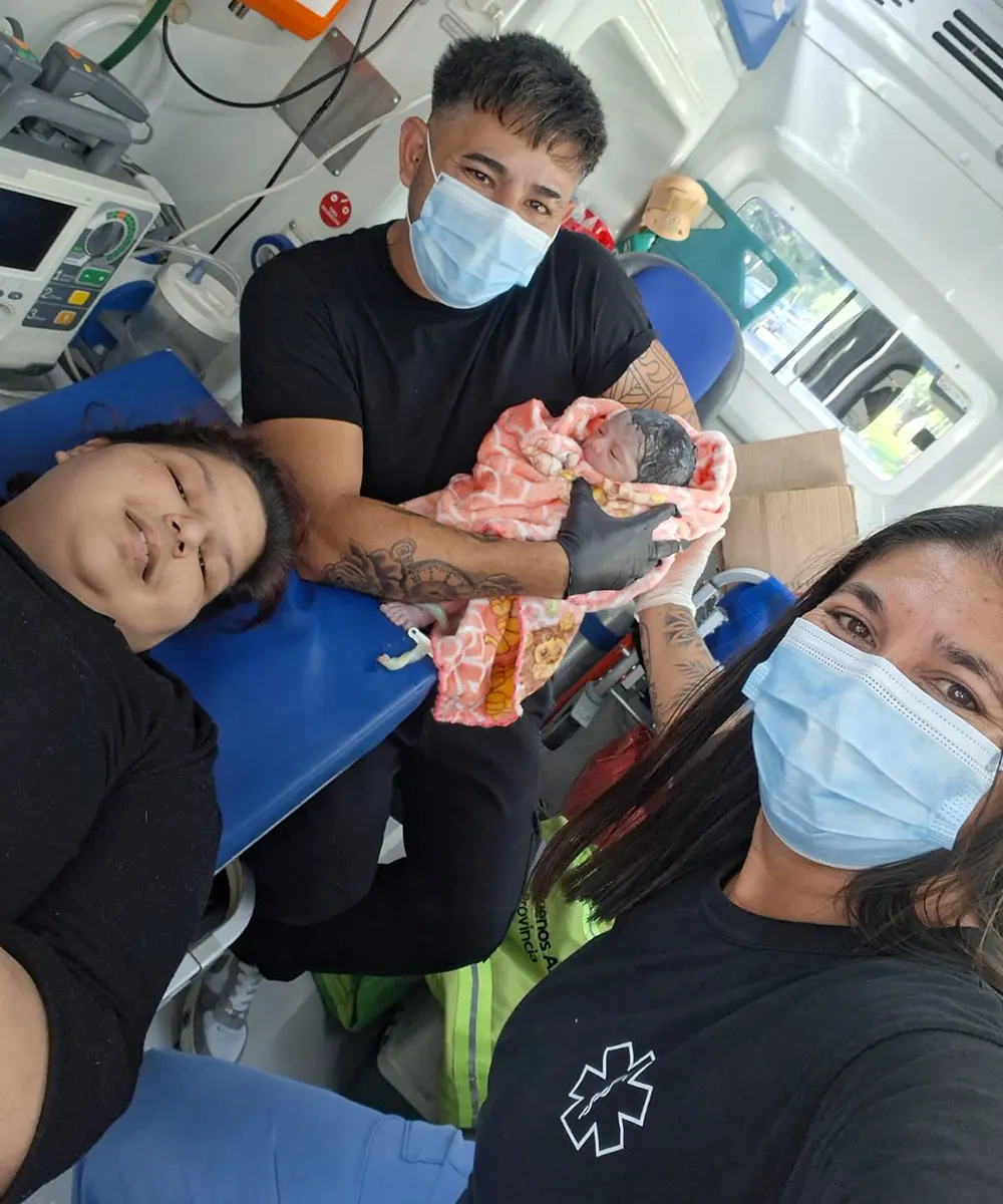 Los profesionales que intervinieron fueron el chofer de la ambulancia, Andrés Lugo, y la técnica en emergencias, Yésica Vergara. Ambos acompañaron el parto hasta su finalización y garantizaron la atención durante el procedimiento.