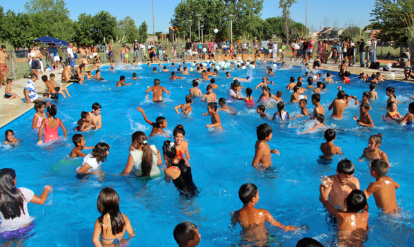 Chicos de diversos barrios de Maquinista Savio participaron de la inauguración oficial de la temporada de pileta.