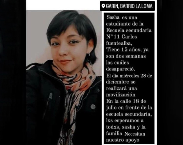 Con el paso de los días la preocupación fue creciendo. Los pedidos de información sobre su paradero se multiplicaron en las redes sociales y el miércoles 28 se organizó una manifestación en la puerta de la Escuela Secundaria Nº11, de la que es alumna, para darle mayor visibilidad al caso, que a esa altura mantenía en vilo a todo el vecindario.