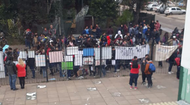 Asimismo, durante la mañana, mientras los jóvenes realizaban una sentada en la puerta del colegio, adentro un grupo de docentes y padres, acompañados por los delegados del Centro de Estudiantes, mantuvieron una reunión con el inspector del área, Fernando Santajuliana, quien intentó poner paños fríos.
