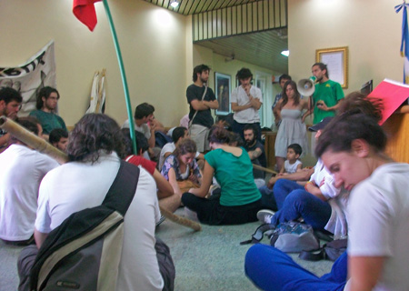 El ingreso de los manifestantes al edificio Antonio Lambertuchi se produjo a las 13.30 y se prolongó hasta las 16.30. Antes, cuatro de ellos habían sido recibidos por el subsecretario de Obras Públicas, Héctor Giambuzzi, quien salió a ponerle el pecho al reclamo del edificio para el Ciclo Básico Común (CBC) de la Universidad de Buenos Aires (UBA).