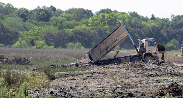 Movimiento de suelos. Las máquinas llevan meses trabajando en los humedales ocupados por Naudir Delta.