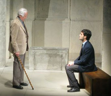 En la obra, Luppi dialoga con Navarro en una iglesia.