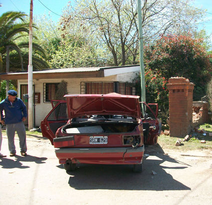 portada Un Renault 9 impactó contra una columna y sus dos ocupantes sufrieron lesiones de consideración. La causa habría sido el pinchazo de una cubierta.