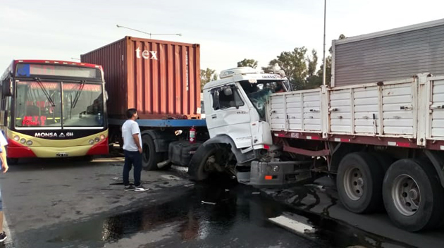 Impresionante choque de dos camiones y un colectivo en la entrada de Maschwitz