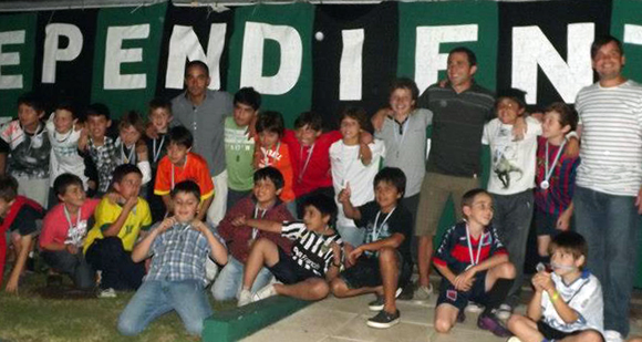 Los chicos de la escuela de fútbol, junto a sus profesores. El arquero Lautaro Lezcano fue elegido el mejor del año.