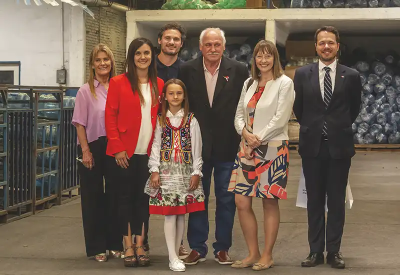 La comitiva recorrió las instalaciones de la fábrica y luego compartió un almuerzo muy ameno, donde se habló de las raíces familiares y de la historia tan fuerte y conocida de Polonia en la segunda guerra mundial.