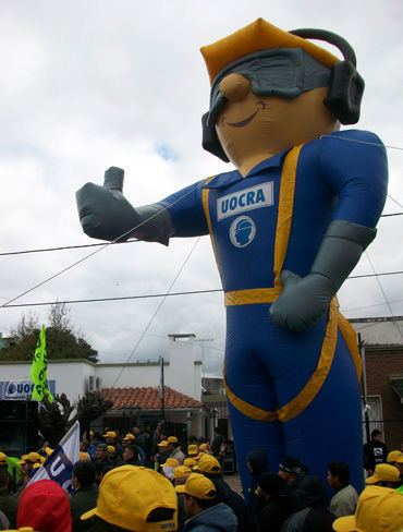 Convocados por su sindicato, más de cien trabajadores con gorras amarrillas -en lugar de cascos- se concentraron sobre la calle Mitre al 200 para darle marco a la convocatoria, a la que no le faltó ningún ingrediente.