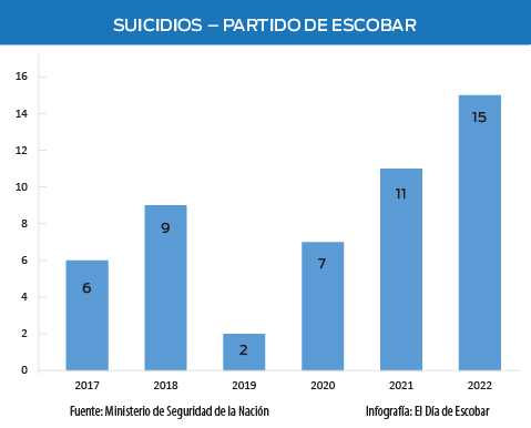 La cantidad de personas que se quitaron la vida a lo largo de 2022 en Escobar duplica a la de 2020 (7). En 2019, el año anterior a la pandemia, habían sido apenas 2, según los registros del Sistema Nacional de Información Criminal (SNIC), dependiente del Ministerio de Seguridad.