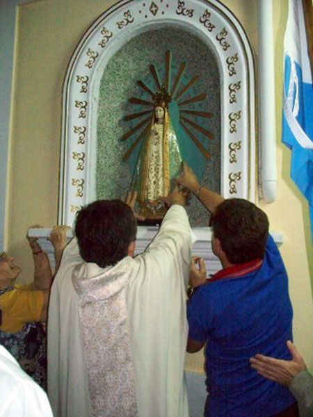 Fue así como el 10 de abril de 1962, por iniciativa de Monseñor Serafini y con el beneplácito de la feligresía escobarense, se entronizó en la estación ferroviaria de Escobar una bella imagen de la virgen.