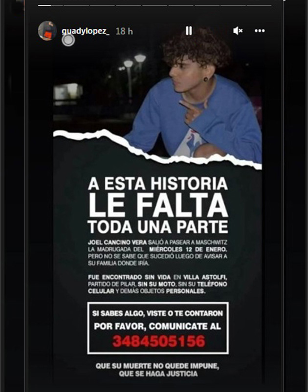 En las últimas horas se conocieron los resultados de la autopsia realizada al joven Joel Cancino. Además, se encontró la moto en la que circulaba: estaba a 20 cuadras del lugar donde fue hallado su cuerpo.