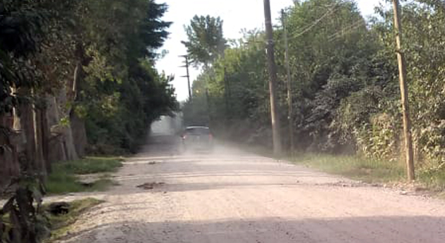 La polvareda existente sobre esa arteria, que va desde Temaikèn al barrio Lambertuchi, ingresa a sus jardines y hogares. Piden que el Municipio envíe un camión regador para resolver el problema.