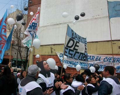 La protesta frente al Erill contó con la adhesión de Barrios de Pie y Suteba Escobar, quienes participaron de la suelta de globos blancos y negros -una alegoría sobre la inequidad laboral en el sistema- como cierre de la manifestación.