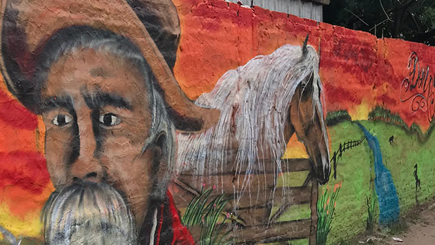 El estanciero Don Garín fue retratado en la esquina de las calles Bourdet y Falco, en el marco del programa municipal de Murales Urbanos.