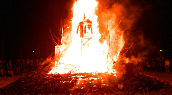 Minutos después de las 19 se dio paso al momento culmine de la jornada y la figura de madera gigante se convirtió en el epicentro del ritual del fuego con la quema de objetos en la pira. Las llamas escalaron varios metros brindando un verdadero show de luz, color y sonido, mientras grandes y, sobre todo niños, avivaban aún más la fogata arrojando juguetes, papeles y los habituales “juanitos” -pequeñas maderas pintadas como amuletos-, portadores de las peticiones individuales que se tiran al fuego al unísono cuando se inicia la quema para dar fuerza colectiva al deseo propio.