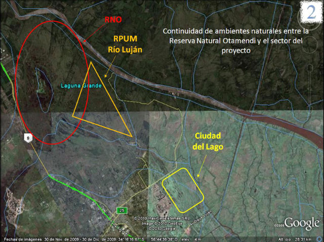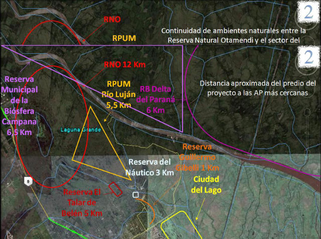 1. Reserva Provincial de Usos Múltiples Río Luján de 1.000 Ha, con una distancia al emprendimiento incorrecta (más de 40 Km), se midió la distancia con Google Eath el 13 de julio de 2010, resultando en 5,5 Km aproximadamente;