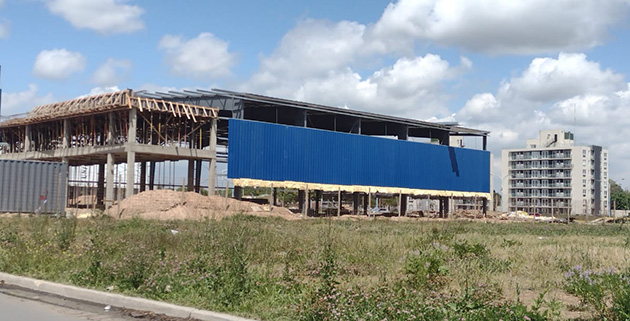 Avance. La estructura que albergará al nuevo supermercado, en la esquina de Cervantes y Sanguinetti.