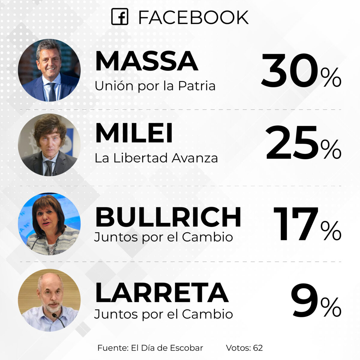 En el transcurso de la semana pasada, con las elecciones primarias, abiertas, simultáneas y obligatorias (PASO) a la vuelta de la esquina, El Día de Escobar lanzó una encuesta en sus redes sociales para conocer la intención de voto a los precandidatos presidenciales.