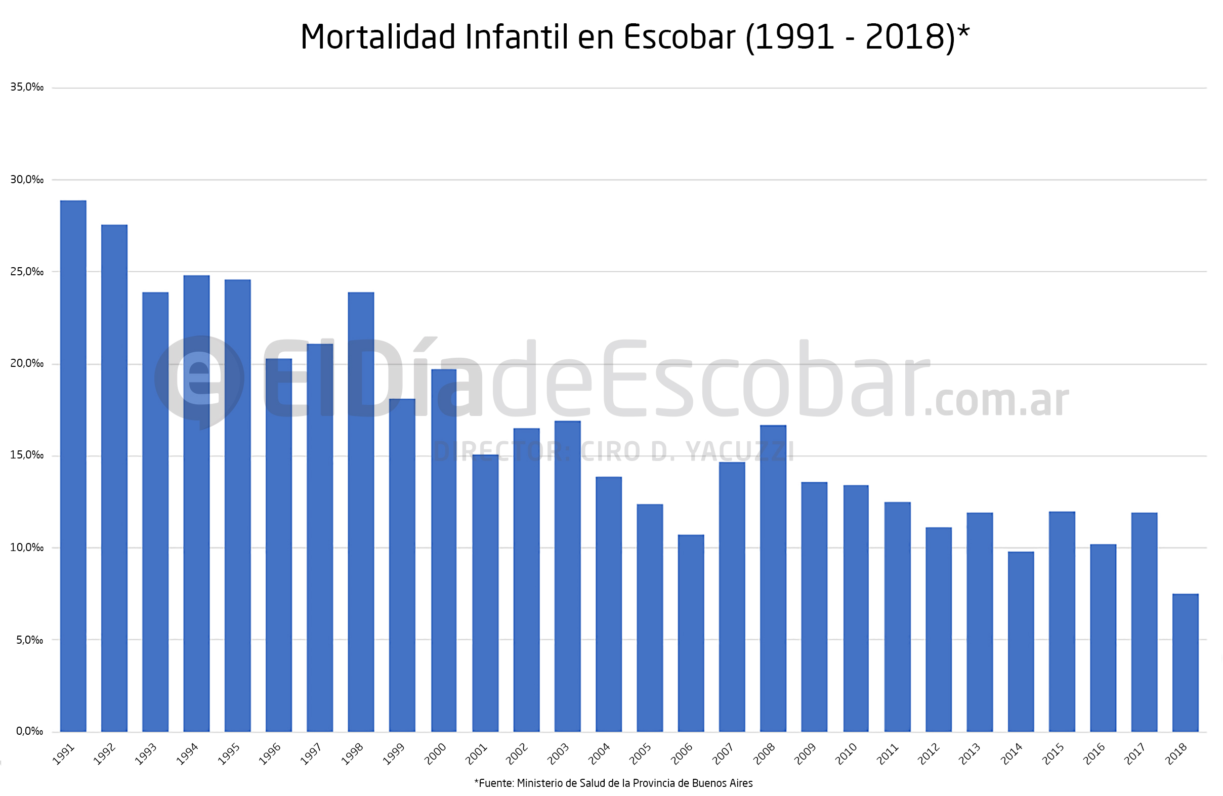 Con cierta euforia por la magnitud del logro, el Municipio informó este martes que en 2018 la tasa de mortalidad infantil se redujo al 7,5 por mil, lo que representa una baja interanual de 36% y el registro más bajo en la historia del partido de Escobar.