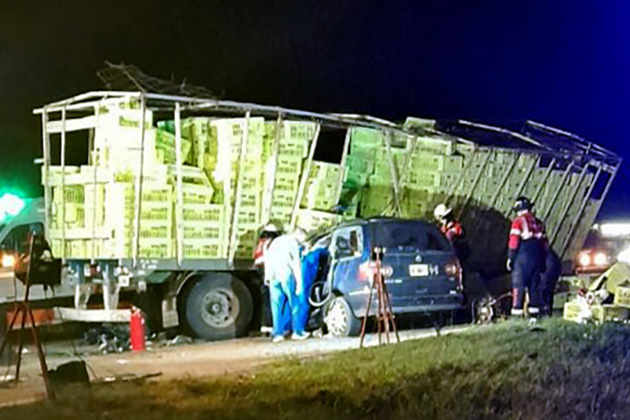 El hecho se produjo minutos después de las 19.30 a la altura del kilómetro 313 de la carretera, en el departamento de Federación, y fue una desafortunada desgracia, ya que el vehículo en el que circulaba esta familia impactó contra un camión que se cruzó de mano por un problema técnico.