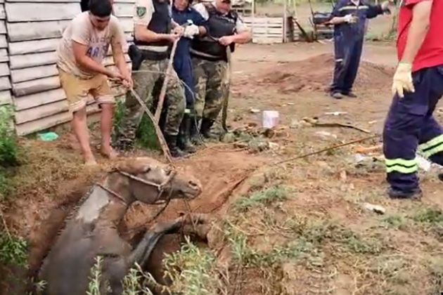 Rescatan a un caballo que se cayó a un pozo ciego en el barrio El Cazador