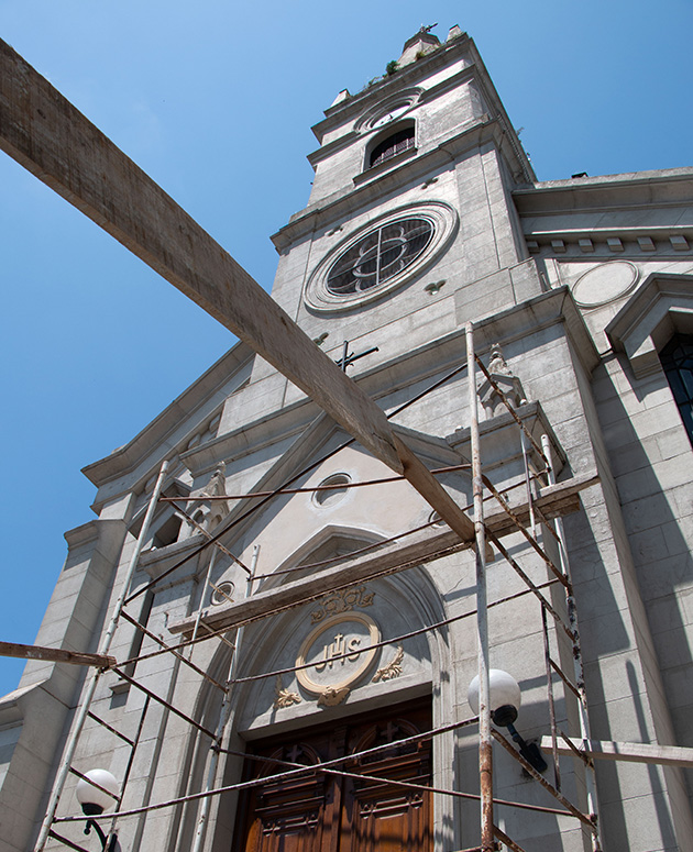 Restauran la fachada de la cocatedral de Escobar por la caída de mampostería
