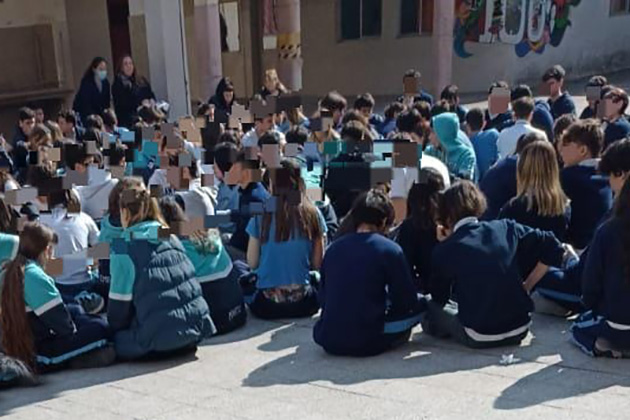Sentada de alumnos del colegio Santa María en defensa de dos docentes