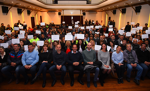 Todos ellos recibieron un certificado de reconocimiento de manos del intendente Ariel Sujarchuk. Además, otros doscientos trabajadores fueron recategorizados y se sumaron a la planta temporaria.