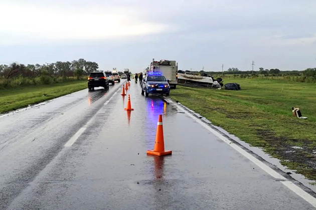 Como consecuencia del violento impacto, el conductor del camión y los cuatro ocupantes del Renault murieron en el acto, mientras que el acompañante del camionero fue derivado con heridas al nosocomio de la localidad de Arrufo.